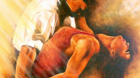 Rumba is often danced as a "cha cha without the cha chas", and whilst this may appear correct, there are major differences, largely in the presentation of the dance. It is known as the dance of love, danced to sexy, sultry 4/4 music at a tempo of 26/27 measures per minute (105 bpm). The Rumba originated in Cuba, and tells the story of a man and a woman in love, or more aptly, lust. The man pursues the woman, flirting with her, and she flirts back, but ultimately she rejects him and casts him away.